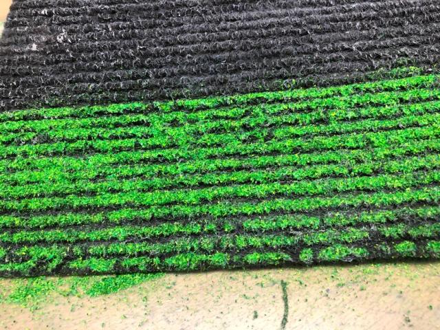 I have used yellow pieces of fur, fleece etc but I did not really get a result I was happy with. Now with the door mat approach I realised that it would be relatively simple to do something that at least felt like the field above rather than a shit-brown surface with some strings of mustard.